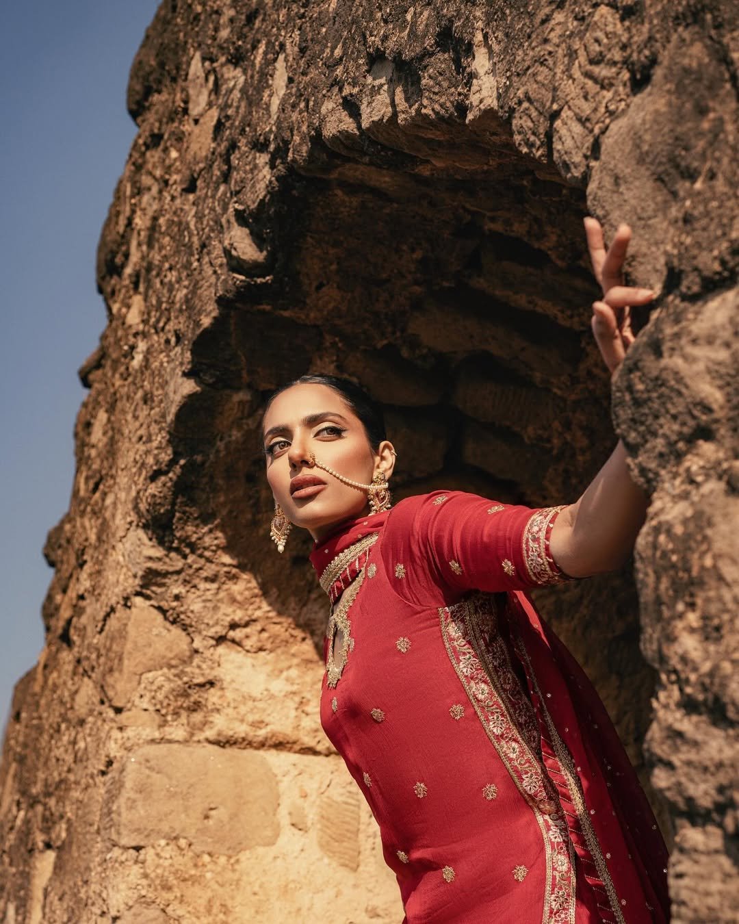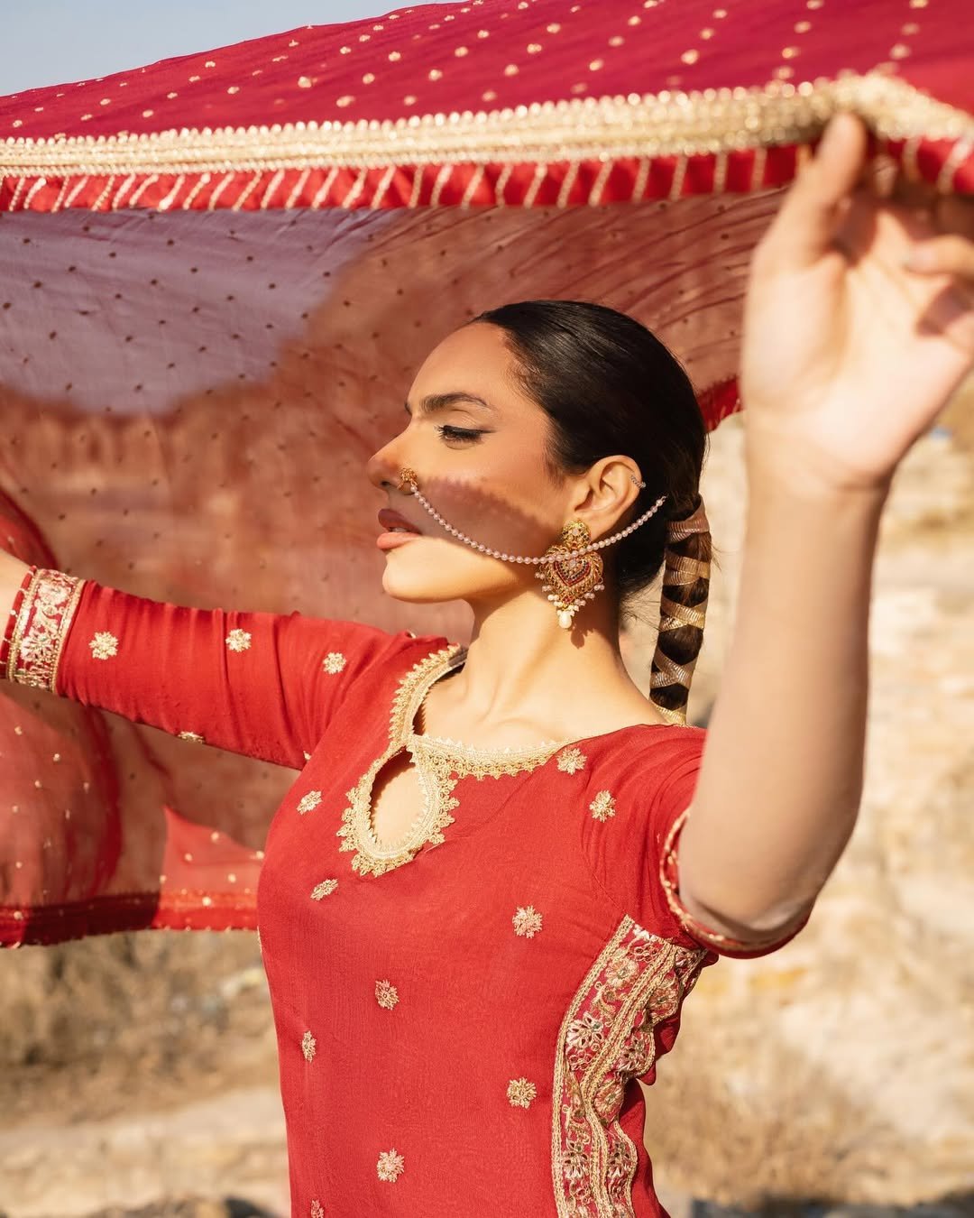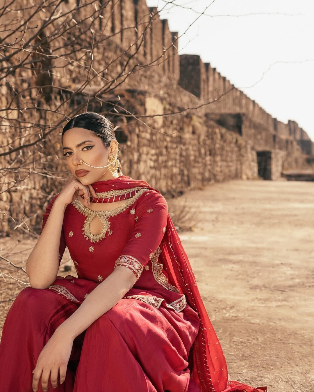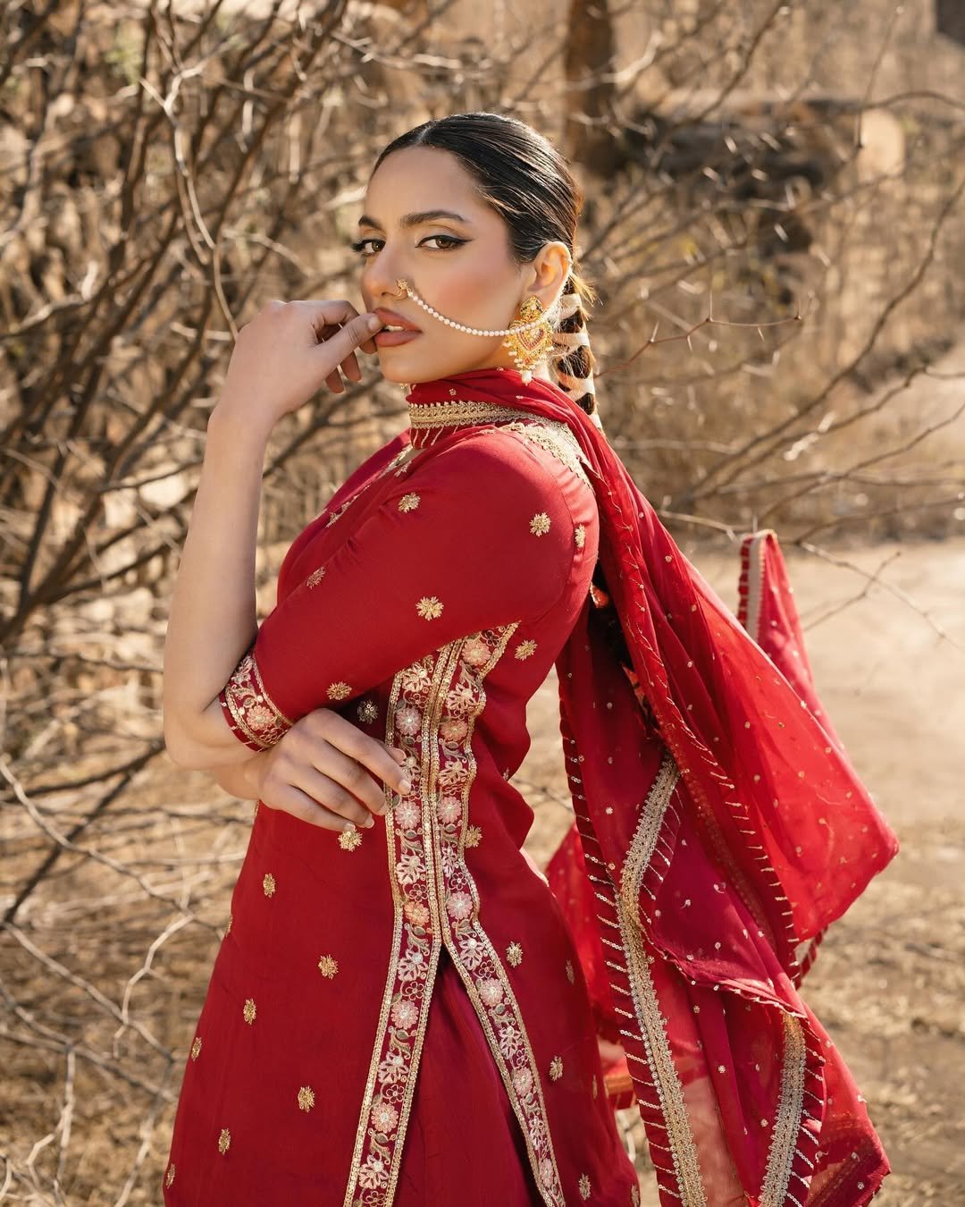The flowing trousers and matching dupatta create a balanced, elegant look, while the detailed neckline adds a statement finish. Light in feel yet rich in appearance, Mirha Crimson is perfect for women who appreciate refined design with traditional depth.